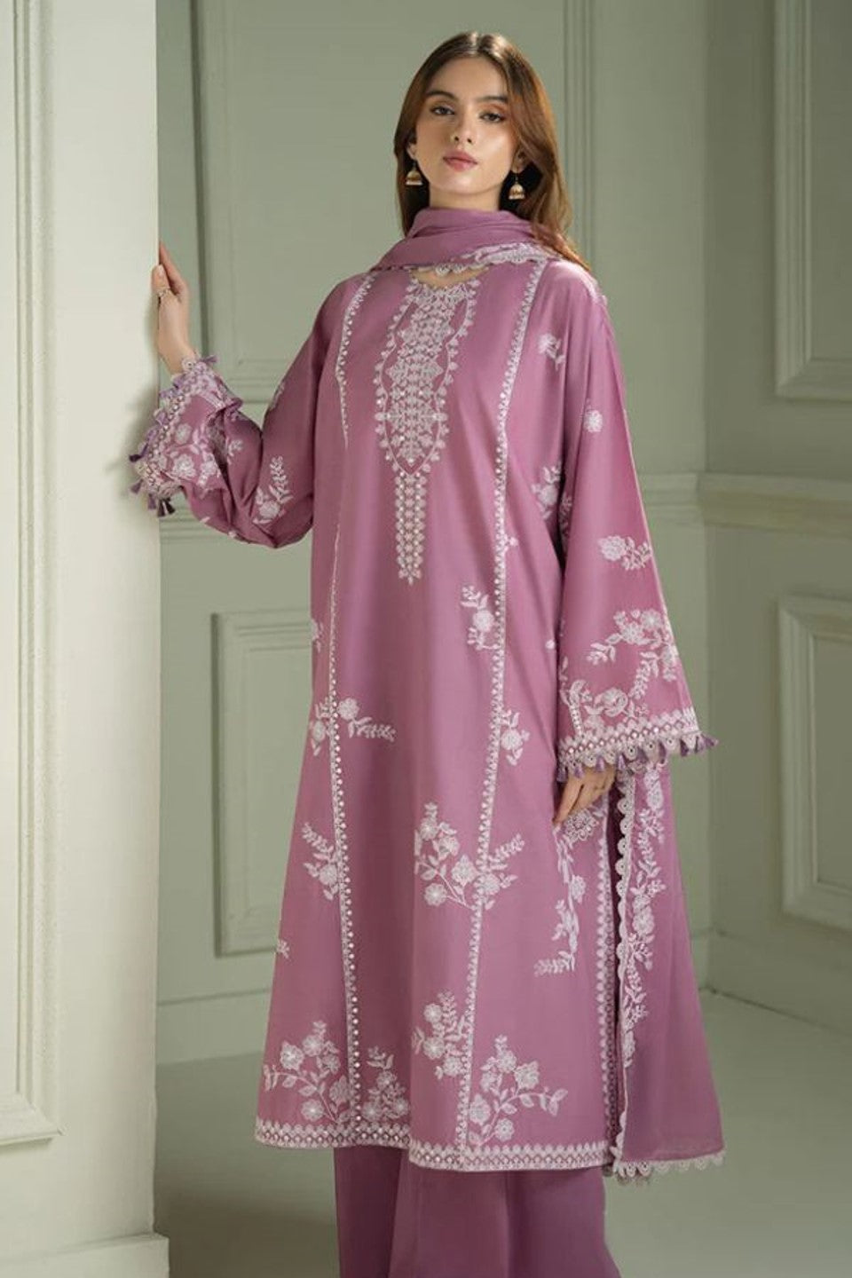 Cross Stitch Hot selling article NF 756 Premium Quality Danak 3PC - Luxury Embridered Shirt with Dyed Trouser with Embroidered Shawl